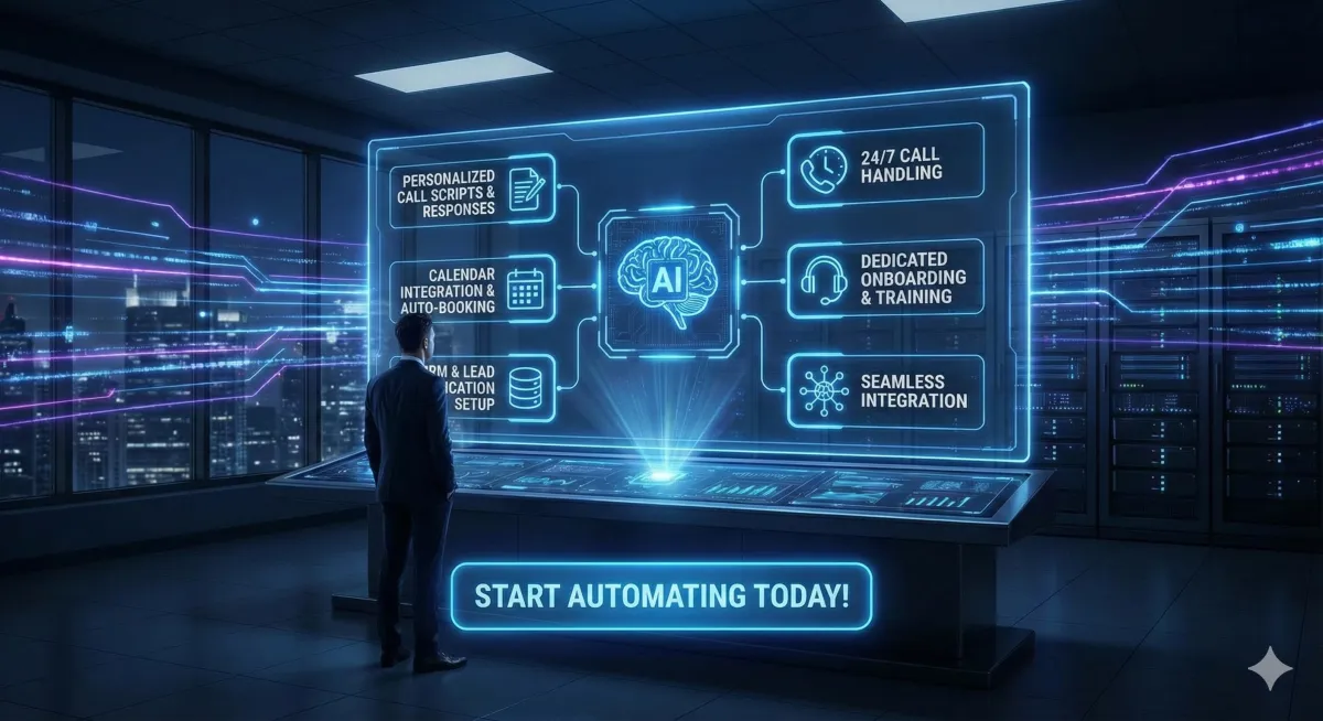Our AI voice agents handle your calls 24/7 — answering questions, qualifying leads, and booking appointments automatically. No more missed calls. No more lost revenue.